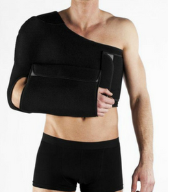 Kamizelka ortopedyczna wykonana z przewiewnej tkaniny piankowej z perforacją. Składa się z materiału wyprofilowanego anatomicznie oraz systemu rzepów pozwalających na obustronne (prawe/lewe) zastosowanie. Kamizelka stabilizuje staw barkowy, ramienny oraz łokciowy w pozycji odciążeniowej, a przy tym pozwala na minimalizowanie okresu pourazowego lub pooperacyjnego.
