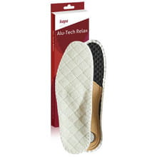 Wkładki zapobiegające opadaniu sklepienia podłużnego i poprzecznego stopy. Podpierają jej sklepienie podłużne. Dzięki zastosowaniu peloty korzystnie zmieniają rozkład nacisków na podeszwowej stronie przedniej części stopy. Pełnią funkcję amortyzatora, znacząco redukując mikrowstrząsy, powstające w czasie zetknięcia pięty z twardym podłożem. Zalecane dla osób, wykonujących zarówno pracę stojącą, jak i chodzącą. Alu Tech Relax wykonano z profilowanego tworzywa, ocieplającej wełny, izolującej folii aluminiowej oraz pianki lateksowej z węglem aktywnym, absorbującym nieprzyjemne zapachy. Wkładka o dobrych właściwościach ciepłochronnych ochrania stopy przed marznięciem.